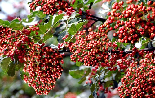 花椒可除各種肉類的腥氣;促進唾液分泌,增加食欲;使血管擴張,從而起到降低血壓的作用。一般人群均能食用,孕婦,陰虛火旺者忌食。果實呈圓形,綠豆大小,其外皮是一種常用香料。果實成熟時紅色或紫紅色果皮叫椒紅,種子叫椒目,都是中藥材,家庭常用調(diào)味品,多見于海拔2500米的坡地,也有栽種。耐旱、喜陽光,各地多栽種。