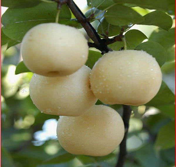 2、愛宕梨:果實扁圓形,果實大型。平均單果重415克,果皮黃褐色,果點較小,果面較光滑,果肉白色,味酸甜可口,品質極上,成熟極晚。10月中下旬成熟,耐貯性較強。