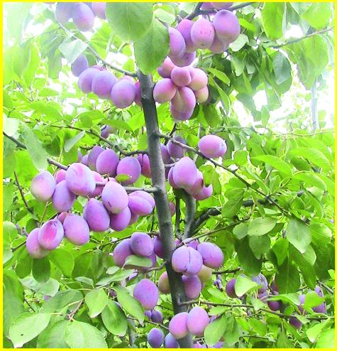 2、安哥諾李子:原引種代號為“布朗3號”,原產美國,親本不詳。大果型,平均單果重120g。果實扁圓形,果頂平,縫合線淺,果柄短。果實成熟時紫黑色,果肉琥珀色,果面光滑具光澤度,果粉少,果點極小。果皮厚,纖維少,味甜,香味濃;肉質極硬,汁少,貯存15--20天后果肉轉為紅色,果汁多,含可溶性固形物15%,離核,核極小,可食率高達98%。常溫可貯存至春節,0--5℃冷藏可貯存至翌年3月份。在陜西地區3月下旬萌芽,4月8日開花,花期12天,果實于9月上中旬成熟。為目前罕見的優質、高產、晚熟李品種。植株生長旺,萌芽率高,成枝力強,易成花。抗旱、耐寒力強,在抗病力上表現特強,葉片幾乎不用任何藥物也能保持到正常落葉。果實極耐貯運。市場前景好,是一個有推廣價值的晚熟李品種。